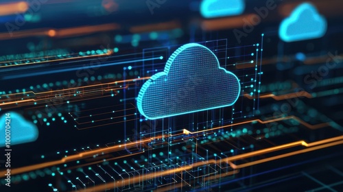 Global cloud architecture, interconnected digital platforms, holographic interface, tech trends visualization