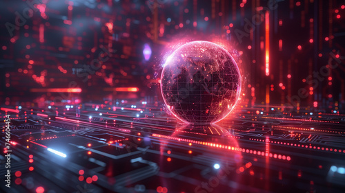 global e-learning, featuring a neon globe surrounded