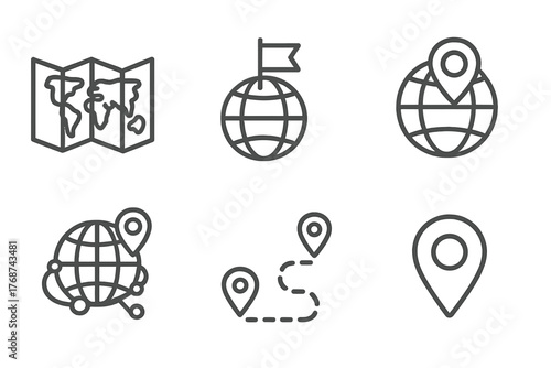 Global map and location icons set highlighting world navigation concept