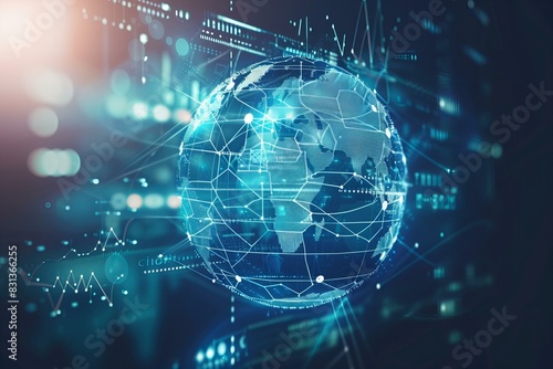 Global map with interconnected network dots and lines