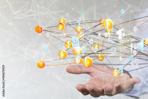 Global network. Blockchain. 3D illustration. Neural networks and artificial intelligence. Abstract 3d
