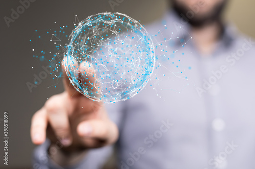 Global network. Blockchain. 3D illustration. Neural networks and artificial intelligence. Abstract
