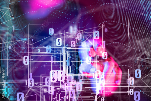 Global network. Blockchain. 3D illustration. Neural networks and artificial intelligence. Abstract