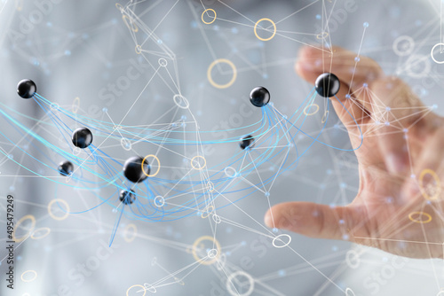 Global network. Blockchain. 3D illustration. Neural networks and artificial intelligence. Abstract