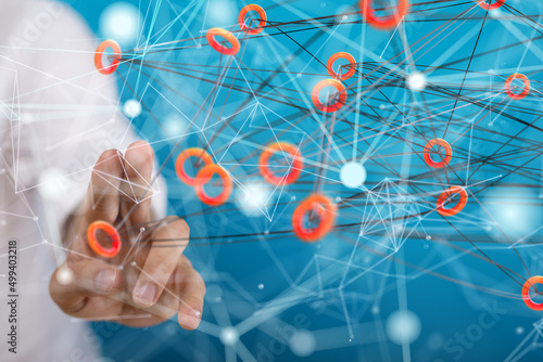 Global network. Blockchain. 3D illustration. Neural networks and artificial intelligence. Abstract