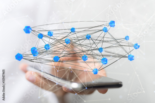 Global network. Blockchain. 3D illustration. Neural networks and artificial intelligence. Abstract