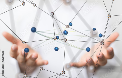Global network. Blockchain. 3D illustration. Neural networks and artificial intelligence. Abstract