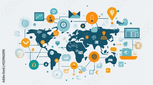 Global network connection, communication, and data exchange.