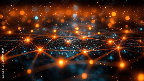 Global network connection, digital data flow, glowing nodes, dark background, technology concept