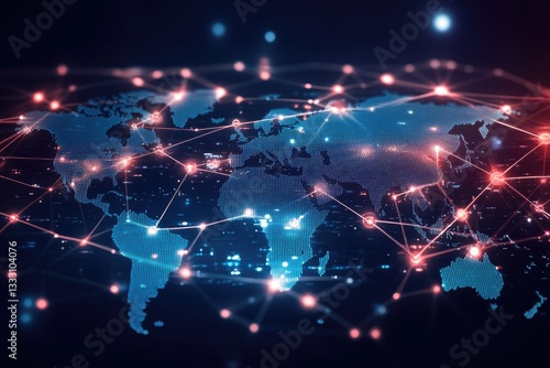 Global Network Connections - World Map with Digital Links - Abstract Background
