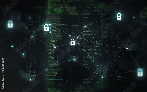 Global Network Cybersecurity Visualization with Secure Data Nodes Background