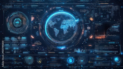 Global network data analysis on futuristic screen