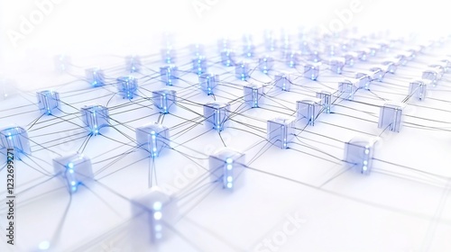 Global network data connection, digital cubes linked, white background, technology concept