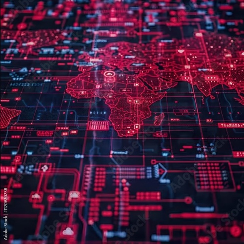 Global Network Data Flow Red Digital World Map