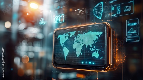 Global Network Digital Interface with World Map