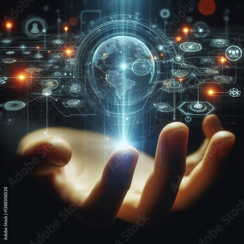 Global Network Glowing Globe in Hands Representing Technological Mastery
