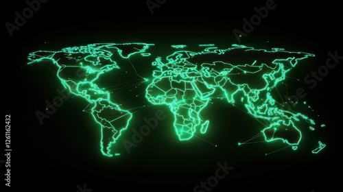Global network glowing map, dark background, connection