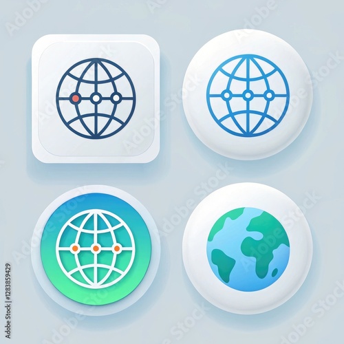 Global Network Icons: Web, World, Earth