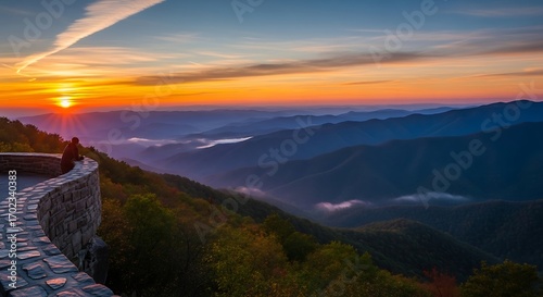 Glorious sunrise over layered mountains from a scenic viewpoint.