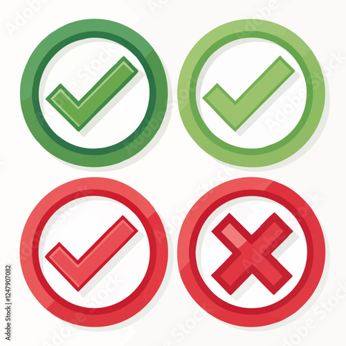 Glossy 3D-Style Checkmark and Cross Icons – High-Quality Vector Graphics