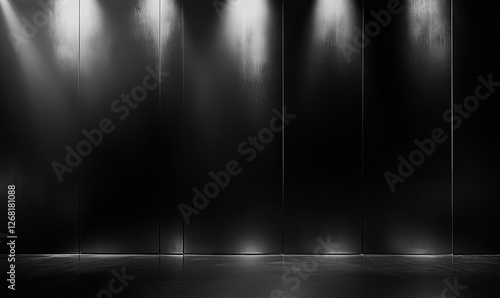 Glossy black backdrop for modern glam shoot, showcasing shiny surfaces and striking high-fashion visual aesthetics