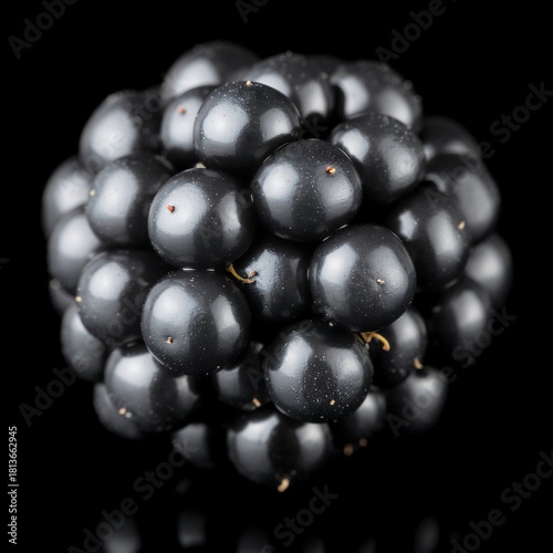 Glossy Black Currant Cluster on Dark Reflective Surface