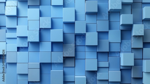 Glossy Cubes with Blue Background. 3D Rendering.