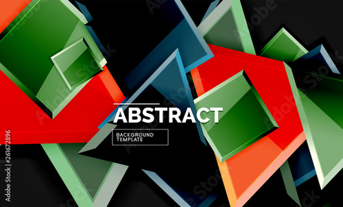 Glossy mosaic style geometric shapes - squares and triangles on black