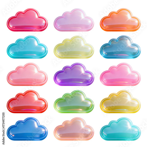 Glossy Plastic Cloud Stickers – 16 Pastel 3D Gradient Icons