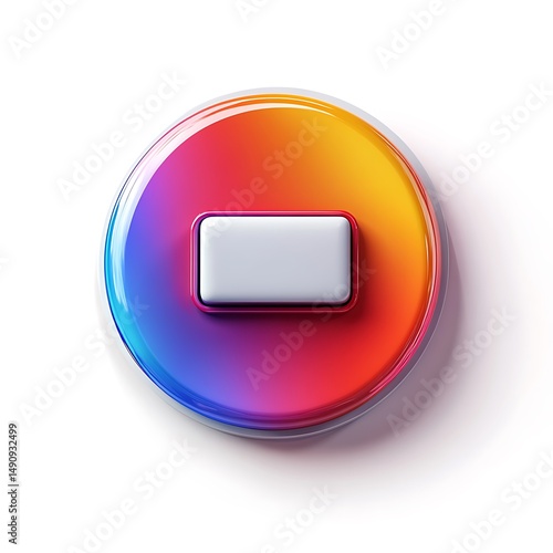 Glossy Rounded Gradient Button on Clean White Background, Web Design Resource, Glossy Tech Button in Rainbow Gradient, Interface Element Isolated