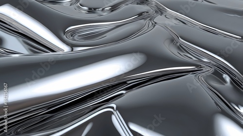 Glossy silver metal fluid glossy chrome mirror water effect background backdrop texture 3d render illustration.