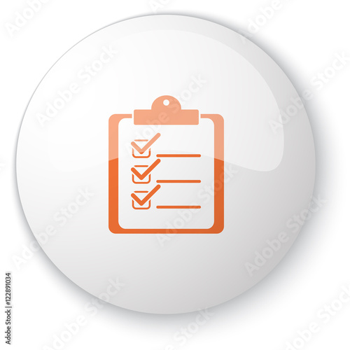 Glossy white web button with orange Clipboard Checklist icon on