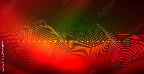 Glowing abstract wave on dark, shiny motion, magic space light. Techno abstract background
