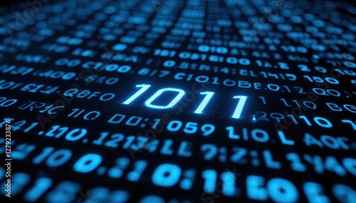 Glowing Binary Code Background with Highlighted Number One Zero One One