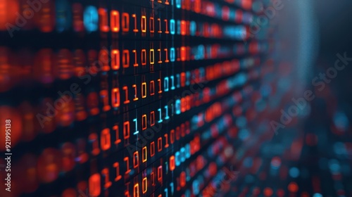 Glowing binary symbols in a seamless communication stream, Binary] illuminated data flow code