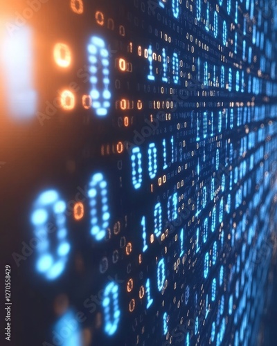 Glowing Blue and Orange Binary Code Digital Data Stream Abstract Background