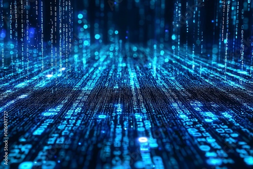 Glowing Blue Binary Code Background with Digital Matrix Effect for Technology Concepts and Abstract Data Representations