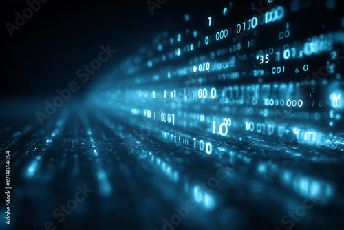 Glowing Blue Binary Code Stream in Futuristic Digital Cyberspace