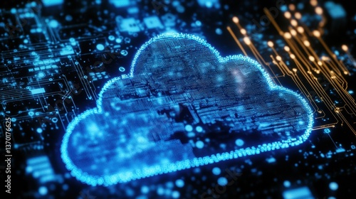 Glowing Blue Cloud Computing Network Abstract Digital Technology Background