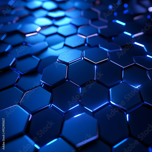 Glowing Blue Hexagon Pattern Abstract Design with Vibrant Illumination