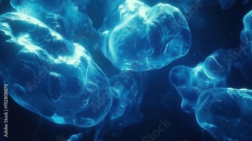 Glowing Blue Microbial Life Under Dark Background