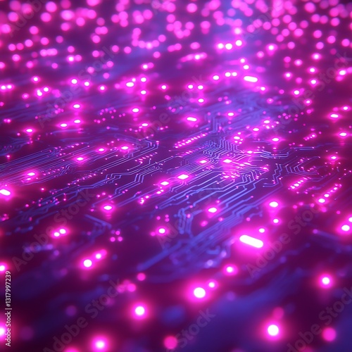 Glowing Circuit Board for Digital Data Flow.