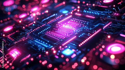 Glowing Circuit Board, Technology, Data Processing, Digital Network, Abstract Background, Tech Illustration