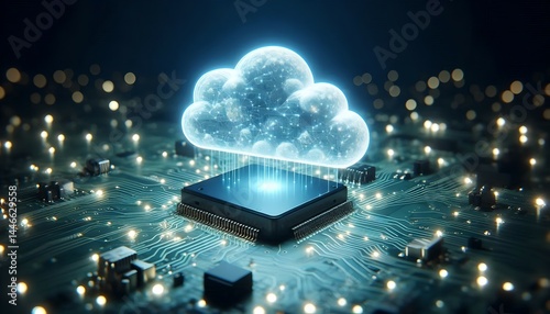 Glowing cloud above CPU, representing cloud computing & data proces...