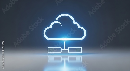 Glowing cloud computing icon with connected lines, digital storage symbol, cybersecurity and online server concept, futuristic cloud network background.