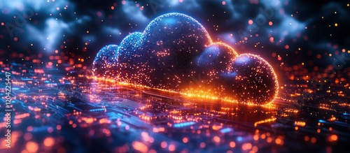 Glowing cloud computing network data.