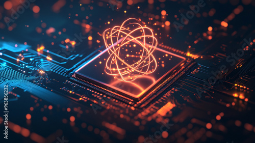 Glowing core on a circuit board symbolizing advanced tech in modern computing