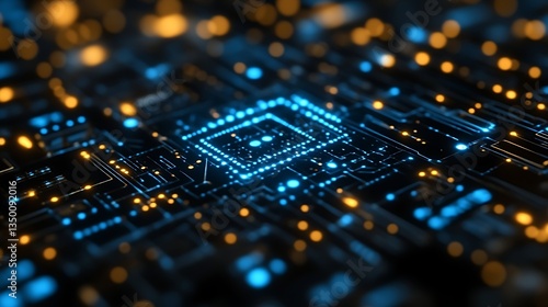Glowing CPU on circuit board.