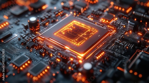 Glowing CPU Processor on Motherboard Close-up of Advanced Computer Chip Technology