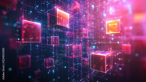 Glowing Cubes Network Data Flow Abstract Background